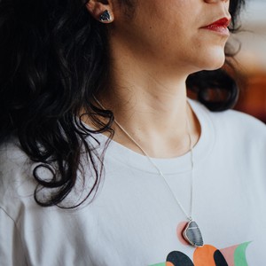 We love sustainable jewelry! Our Iracema collection is designed in partnership with Estudio Iracema in Brazil. Mariana Gouveia, the jewelry designer behind the brand, uses parts of soapstone pieces from Kenya to make this delicate necklace. Sometimes our soapstone items break on their trip from Kenya. We love turning broken pieces into beautiful things because it resonates a lot with the stories of Project Três women. Most of the time, when they come to us, they feel "broken" as well. And our job is to teach them skills, help them find more perspective, and dream again.