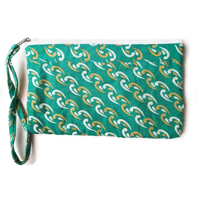 Handmade from upcycled sari cloth, these unique wristlets are perfect for holding your essentials on the go. The interior is spacious and sturdy with a handy wrist strap for additional security, and a bonus zipper compartment on the front.