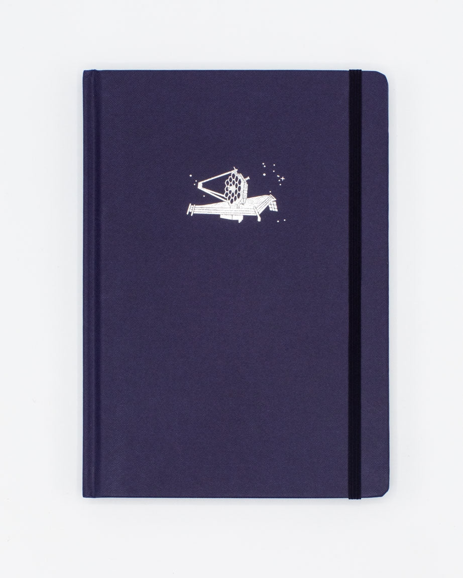 De auberginekleurige omslag is voorzien van de James Webb Space Telescope gestempeld in zilverfolie.