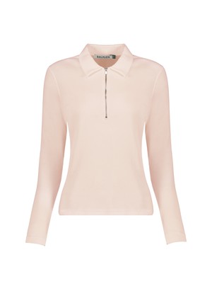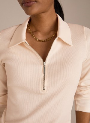 Well-designed, beautifully cut basics are the cornerstone of an easy and feelgood wardrobe. This simple style in Peach Cream straddles the smart-casual balance effortlessly, thanks to its soft organic cotton rib fabric and neat collar detail. Its half-zip neckline provides a touch of modernity: wear it open to show off your favourite pendants or fully zipped for a preppy feel.