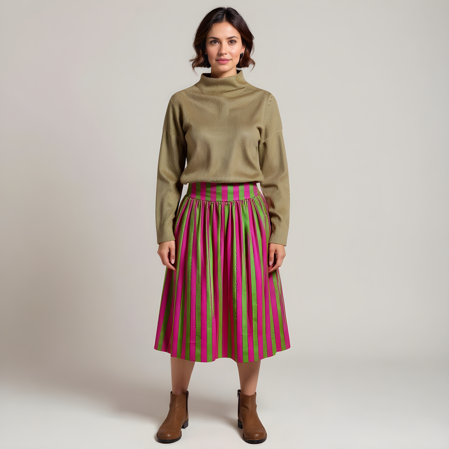 Nachhaltiger One Size Midi-Rock aus Bio-Baumwolle mit Streifenmuster – Verstellbar von XS bis L