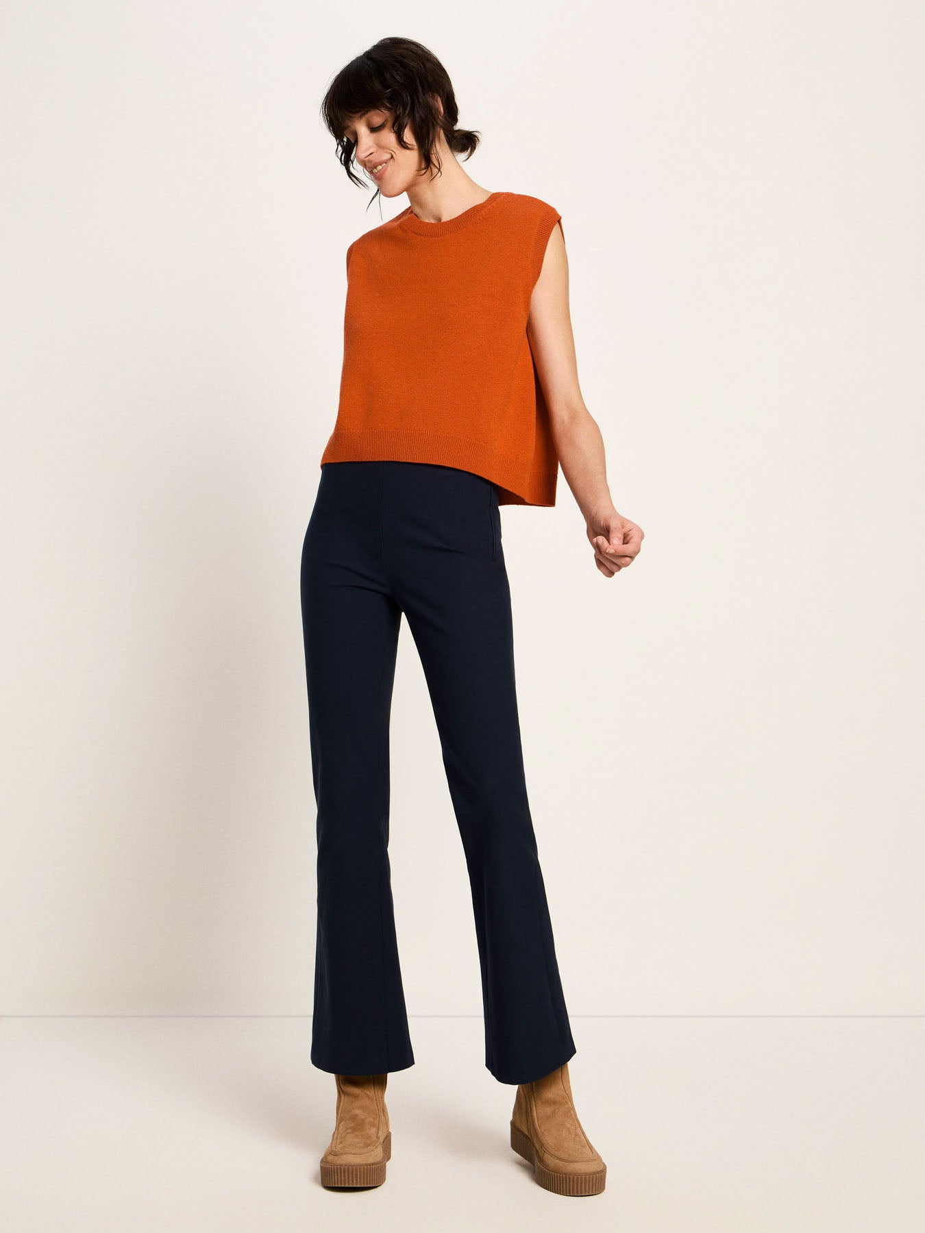 Dieser Pullunder aus reiner, hochwertiger Merino Schurwolle vereint minimalistisches Design mit höchstem Tragekomfort. Das gerade geschnittene Modell mit Rundhalsausschnitt und überschnittenen Schultern lässt sich unkompliziert stylen – solo, in Kombi mit enganliegenden Teilen wie Langarmshirts oder unter Blazern für einen wintertauglichen Office-Look. Dank seiner feinen Strickstruktur ist er leicht, wärmend und ideal für Layering-Looks in jeder Jahreszeit.