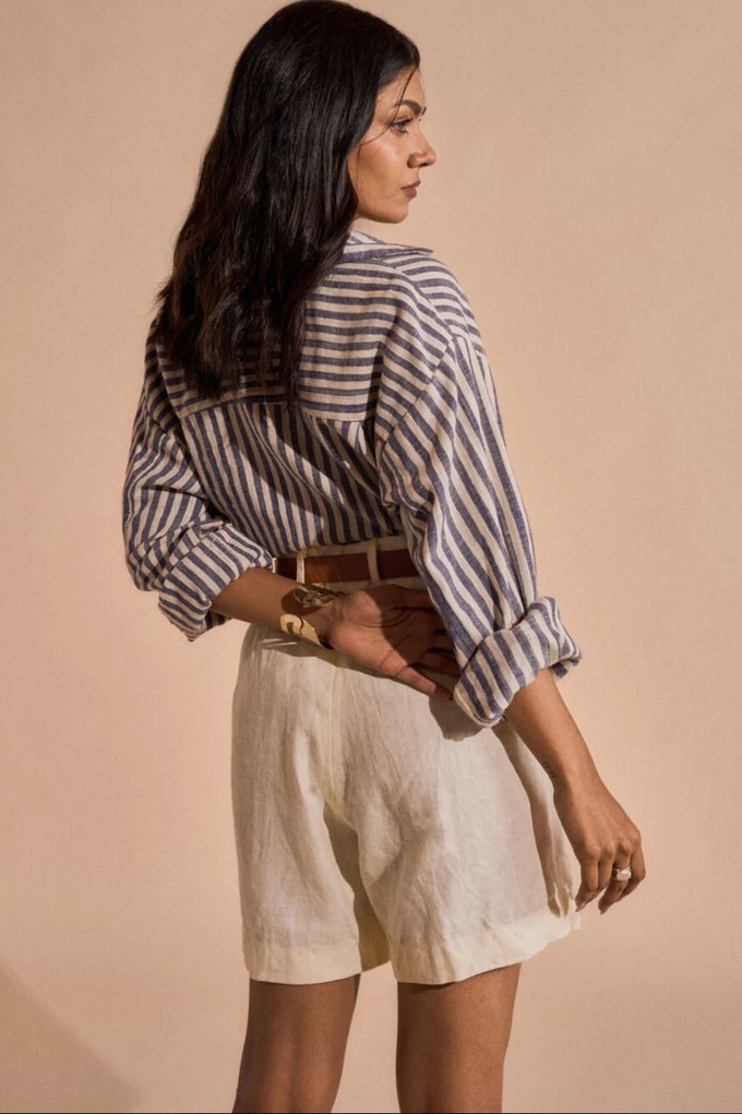 Bhoomis Kleidung wird ehrlich in einer kleinen Familienwerkstatt in Indien hergestellt, die von zwei Schwestern geleitet wird. Insgesamt arbeiten hier 15 Personen, darunter die beiden Schwestern als Eigentümerinnen. Bhoomi besucht dieses Studio zweimal im Jahr und hat auch regelmäßigen Kontakt über Videoanrufe. Die Materialien stammen von zwei Lieferanten in Ahmedabad, Indien und sind GOTS-zertifiziert. Das garantiert faire und nachhaltige organische Materialien. Bhoomis Kleidung besteht unter anderem aus Bio-Baumwolle, Leinen, FSC-zertifiziertem Modal und Cupro. Die Marke verwendet auch handgewebte Baumwolle, einen Stoff mit geringem ökologischen Fußabdruck, der weder Wasser noch Strom benötigt: Er wird von Hand gewebt. Bhoomi verwendet nur kompostierbare Verpackungen, auch von Lieferanten und Kunden.