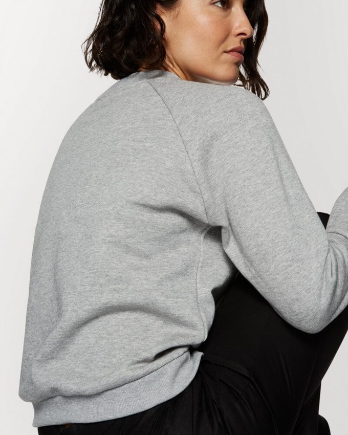 Whether you’re curling up on the sofa or going out to the park, you’ll feel perfectly comfortable in this grey round-neck sweater. Greta is an allrounder with a brushed inside for a soft touch, raglan sleeves, and ribbed hems. It has a regular ‘stylish’ fit (see the pictures for reference when you pick your normal size). If you are looking for an oversized more casual look, you can buy one size up.