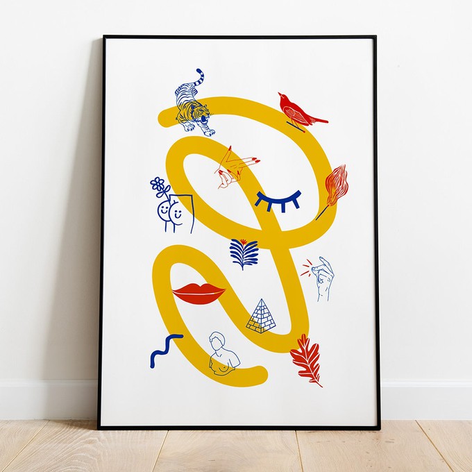 Illustration inspired by our designs and made by hand serigraphy printing on recycled paper with eco ink.