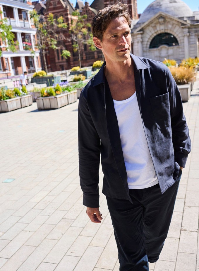 This fabric is the product of a multi-year Research & Development Project The shirt has an extremely soft handle and is very breathable, Regenerative Cotton is a revolutionary method of cultivating cotton which seeks to upturn the environmental effects of industrial farming. Traceable back to cotton farm in Turkey we have used the special fibre for our Black lightweight flannel Spitalfields , wear as a shirt or a jacket - versatile menswear that can be returned to us post use.