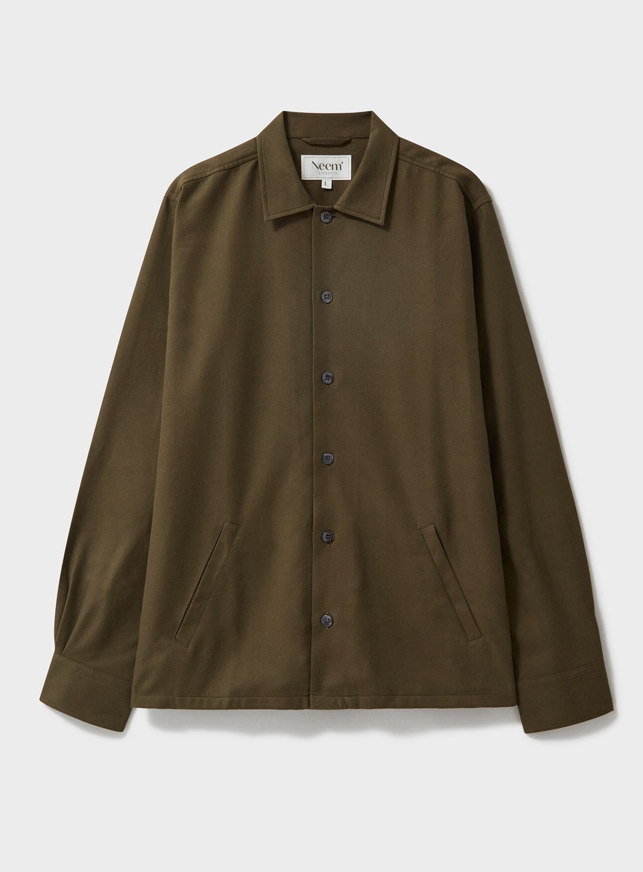 The Neem St James overshirt, clean overshirt with two wide welt pockets is made of 100% Regenerative Organic Certified cotton from farms working toward the highest organic standard, which aims to rehabilitate soil, respect animal welfare and improve the lives of farmers. These practices reduce greenhouse gas emissions and could help trap more carbon than conventional agriculture. Its primary goal is to preserve long-term soil health through sequestering carbon, and minimizing water and fertilization usage. This fabric is the product of a multi-year Research & Development Project The shirt has an extremely soft handle and is very breathable, Regenerative Cotton is a revolutionary method of cultivating cotton which seeks to upturn the environmental effects of industrial farming. Traceable back to cotton farm in Turkey we have used the special fabric for our light black flannel, wear as a shirt or a jacket - versatile menswear that can be returned to us post use.