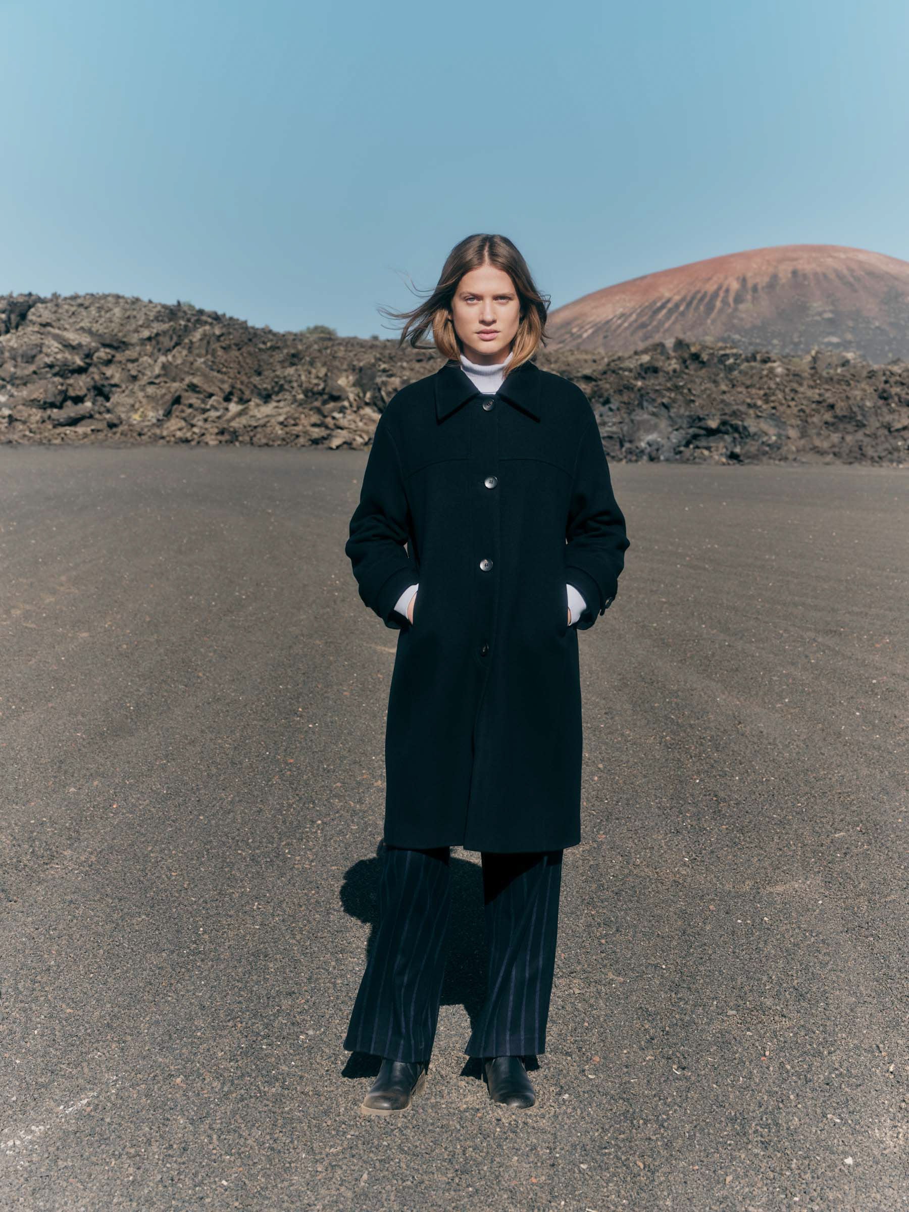 Ein zeitloser Klassiker mit moderner Note: Der Mantel im cleanen Design überzeugt mit klarer Linienführung, durchgehender Knopfleiste und spitzem Reverskragen. Die hochwertige Schurwolle sorgt für Wärme, Langlebigkeit und einen angenehmen Griff. Lässig überschnitten mit geradem Schnitt, seitlichen Eingrifftaschen und Knopfdetail am Ärmelabschluss, lässt er sich vielseitig kombinieren – vom Business-Look bis zum entspannten Everyday-Style.