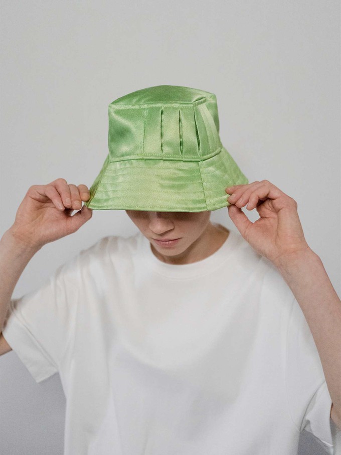 Angular design makes the Covert hat everything but basic. The removable logo strap guarantees an extreme look and the strap can even be used with both the Combo and the Curious bags as well. Your perfect accessory for fending off sun rays and rain drops. This upcycled, slightly shiny and pale green fabric is turned into an urban item with striking paneled structure details on the sides.