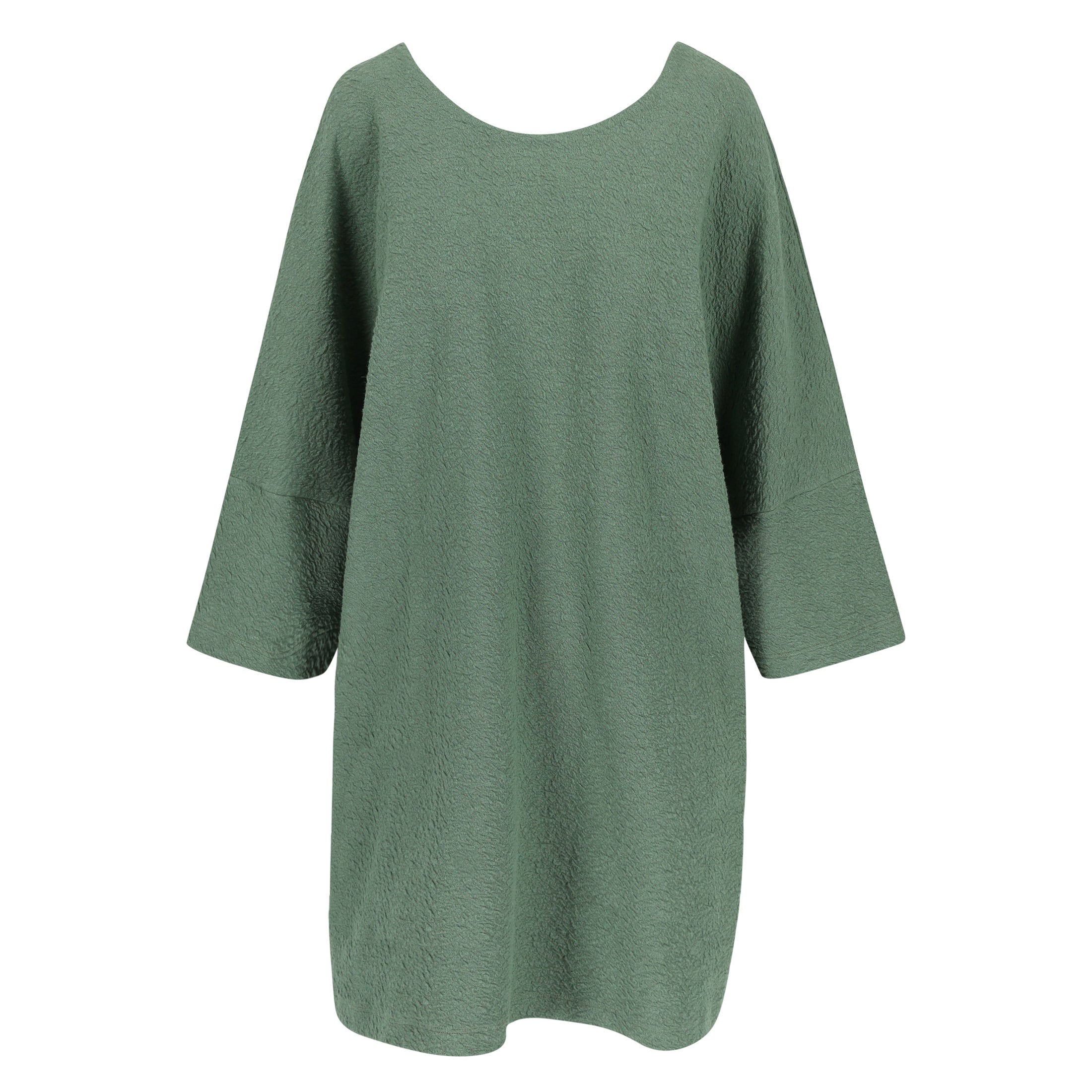 The Aurora dress is a reversible dress, you can wear the cleavage in the front or in the back. This dress has a loose fit, wide sleeves and pockets in the side seams. The length of the midi version is between the knees and the calves.