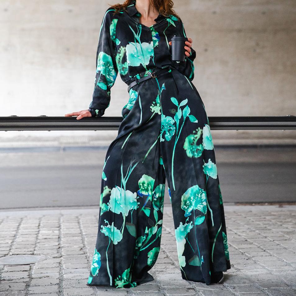 Skirt or pants? These stylish wide pants have a front plea and pockets in the side seams. Go for a full look and pair them with the Pearl blouse in the same print or combine with a top or cosy knit. Add sneakers, heels or boots and you're good to go.