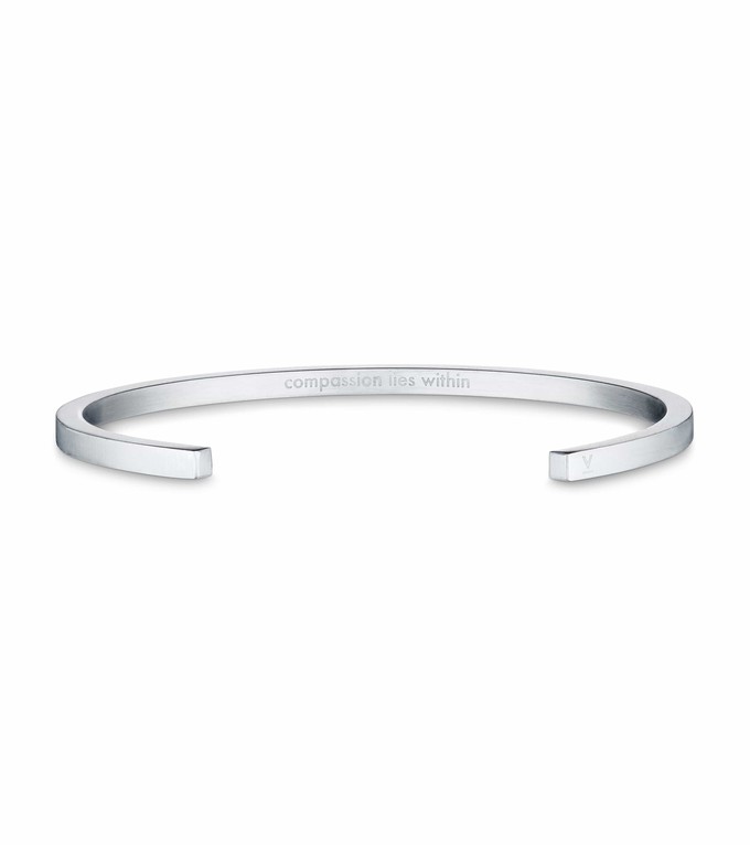 AVAILABLE NOW Our classic bangles are beautifully crafted with minimalist style at the heart of the design. With a subtle ‘Compassion Lies Within’ message engraved on the under side, they are a little reminder of kindness. Created from 100% stainless steel, chosen for being the most sustainable and recyclable of metals