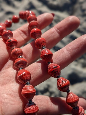 Die Handwerker von Pearls of Africa stellen in Uganda wunderschönen Schmuck aus recycelten Materialien her.