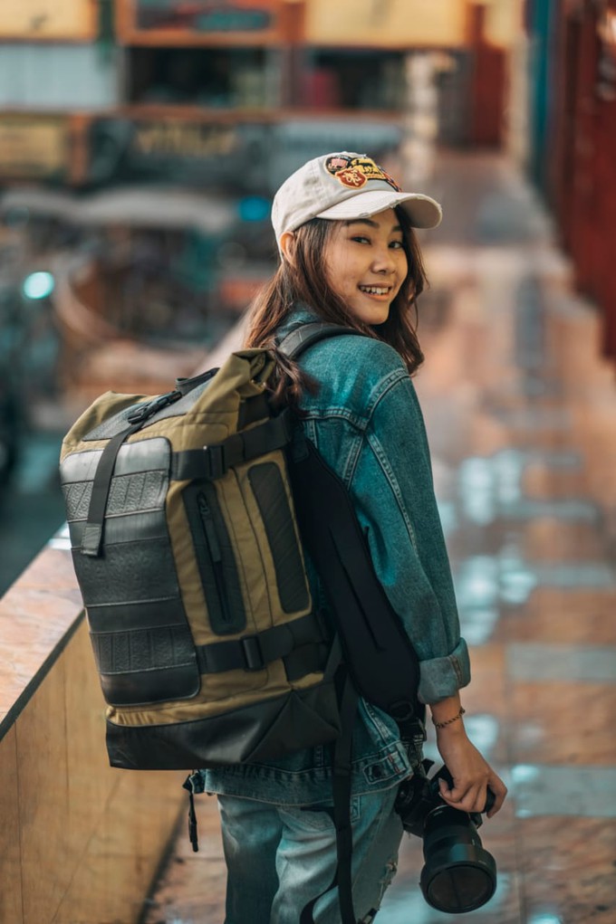 Equally at home on the road or on a mountain side, the bag has padded compartments for a laptop and other tech. The storage space can be increased or reduced as desired by the compression straps on the sides and a rolled top. Adjustable shoulder straps are cushioned for comfort and there is also a side handle to enable the bag to be used as carry-on luggage.