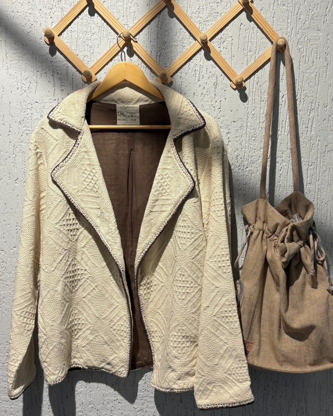 A softly tailored handwoven jacket in an undyed, textured weave, finished with a gentle lapel and visible hand-embroidered detailing. The jacquard surface adds depth and warmth, while its relaxed form makes it a timeless, seasonless layer-quietly expressive, and meant to be worn often.