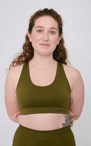 Sweat-wicking, breathable Workout Bra made with recycled materials.