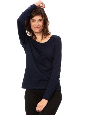 Dieses unbedruckte Longsleeve wird aus 100% hochwertiger und weicher Biobaumwolle hergestellt. Es hat einen weiten Rundhals-Ausschnitt, ist leicht tailliert, hat eine angenehme Länge und fällt bequem lässig aus.