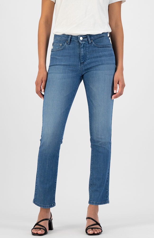 The Faye Straight is a versatile style from Dutch brand MUD Jeans. It is a mid-waist model, has a straight leg and wears comfortably due to a small amount of elastane. These jeans come in lengths 32 and 34 and have the color 'authentic indigo'.