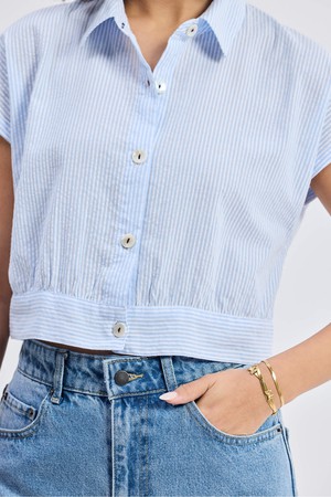 A relaxed-fit button-up shirt with a chic cinched waist, this retro inspired classic striped piece is a new hue in one of our best-selling signature styles. Made from 100% cotton this shirt is lightweight, breathable and great for summer and beyond.