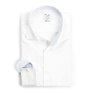 Every man needs a white shirt in his closet. It is the same as the 'little black dress' for women. And for the man who likes to give his shirt a bit more style, we proudly present the Serious White Contrast. A luxurious shirt made from Italian fabric, with a classic Oxford weave. This makes the shirt a little bit thicker than the other white shirt from the Serious collection, the Twill woven Serious White. The Serious White Contrast has a blue pattern contrast at the collar and the cuff. This gives the classic white shirt just that little bit of a personal touch. The white buttons are made from sustainably grown mother of pearl. This adds to the classy look of the shirt. The buttons are fastened with the patented Ascolite system. The high quality fabric is 100% organic cotton. Oxford woven, with a standard slim fit.