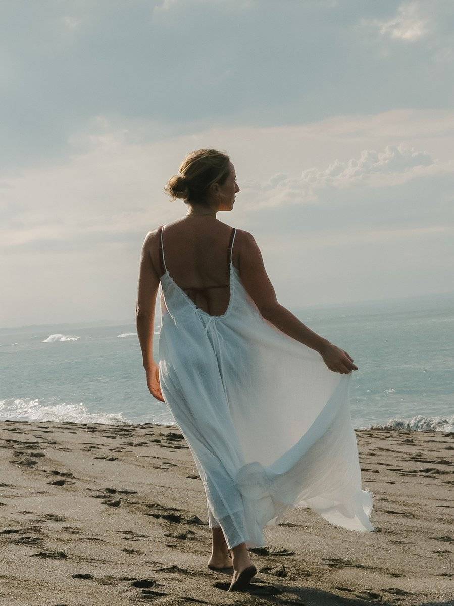 Playful dancing, flying free. Inspire a constellation of calm and daring in our maxi Amphitrite Dress.