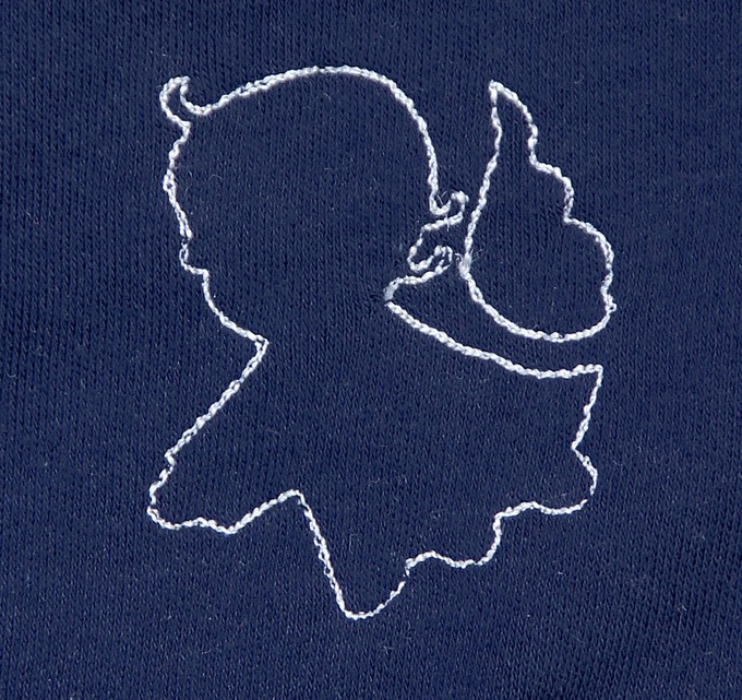The Newborn Pant with Foot in Organic Pima Cotton has an Angel embroidery in contrasting colour on the front left side.