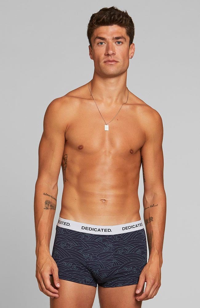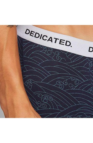 This navy-coloured Dedicated boxer is made of soft organic cotton and has an all-over Japanese wave print. The boxer has a comfortable band at the top: which reads Dedicated in white and black letters.